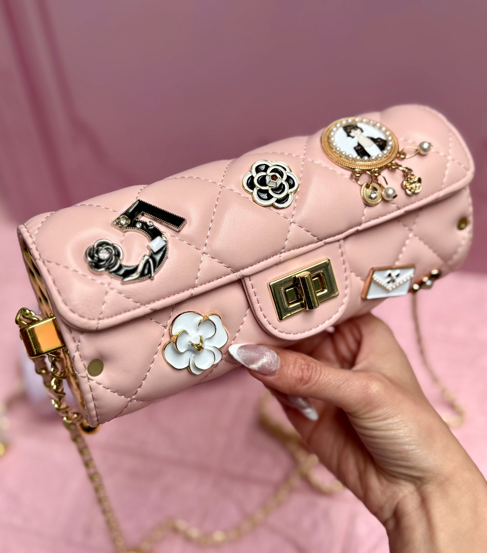 Este exclusivo baúl de lujo está elaborado en cuero sintético de alta calidad, complementado con herrajes dorados que aporta un toque sofisticado y elegante. Con unas medidas de 21 cm de ancho, 9 cm de alto y 7 cm de profundidad, es el accesorio perfecto para realzar tus looks con delicadeza y exclusividad, disponible en colores negro, marfil, rosado y lila, cuenta con una cadena dorada adornada con un dije en forma de flor que resalta su feminidad. Además, posee pines de lujo que le confieren un diseño delicado y exclusivo, ideal para quienes buscan un accesorio único y sofisticado.