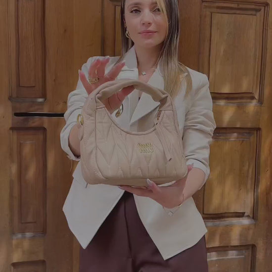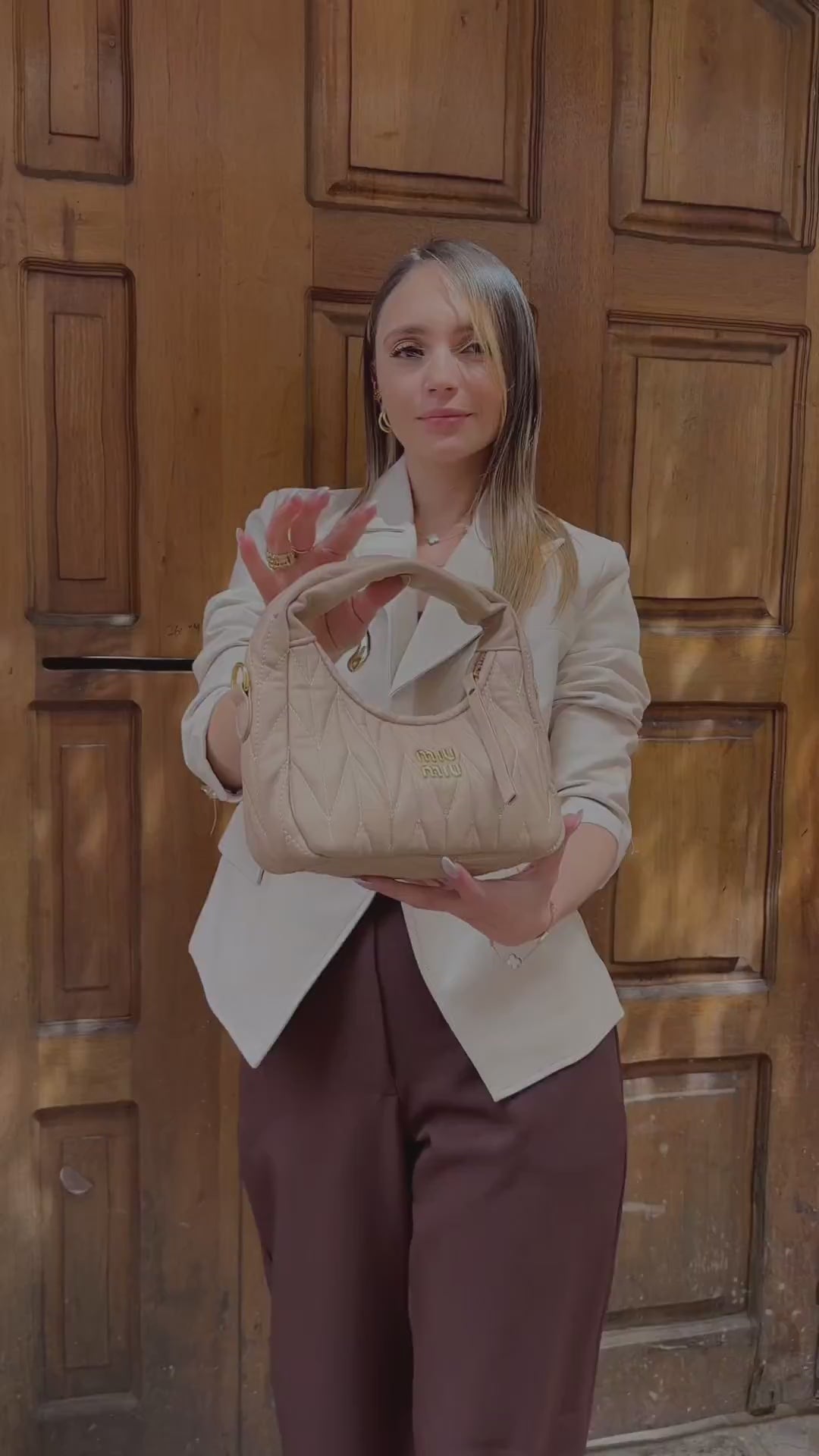 Mi.u Mi.u, este bolso está elaborado en cuerina sintética, referencia que ha marcado tendencia, es un diseño ergonómico cómodo a la hora de lucir, lo puedes llevar de mano o cruzado, su textura y tejido lo hacen diferente, el logo los herrajes dorados lo hace ver más top y sofisticado, cuenta con unas medidas de 22 cm de ancho, 15 cm de alto y 8 cm de profundidad, es ideal para llevar tus esenciales con estilo y comodidad, está disponible en negro, blanco y nude, viene contramarcado.