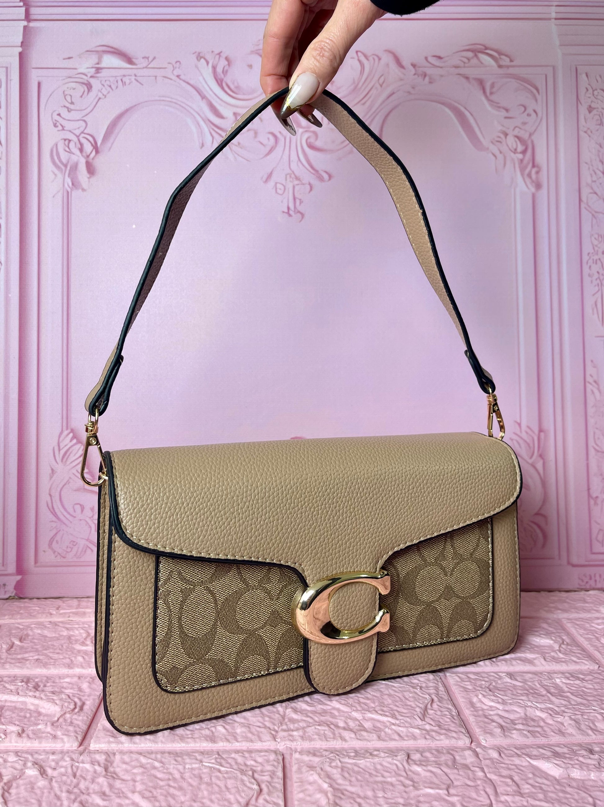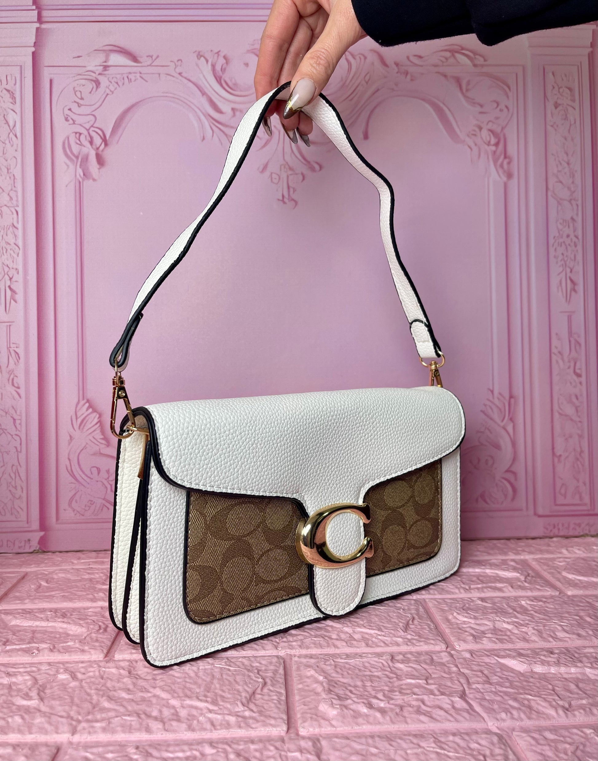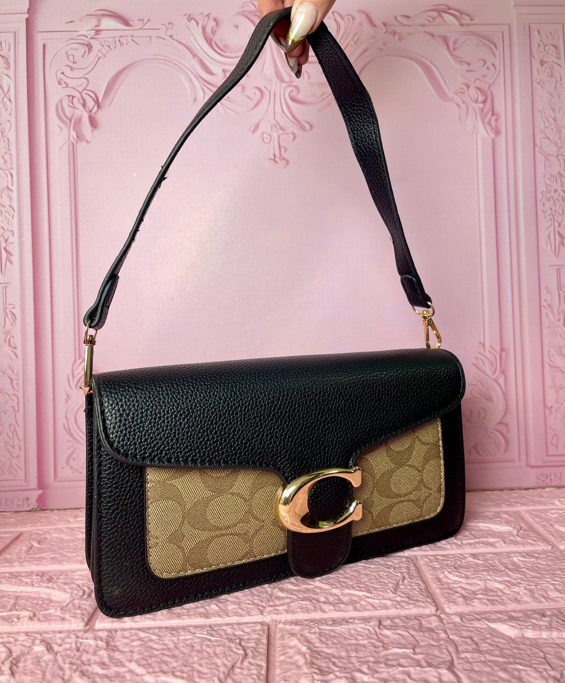 La coach tabby es un bolso de silueta rectangular alargada, con líneas definidas y un estilo elegante y compacto, elaborado en cuero sintético con textura granulada, lo que aporta resistencia y un aspecto lujoso, cuenta con 2 correas una para llevarlo de hombro y manos libre, los detalles metálicos son en tono dorado brillante destacando detalles de la marca, este bolso es clásico y sofisticado, moderno y versátil, perfecto para ocasión es formales, sus medidas son: 23 cm de ancho, 15 cm de alto y 6 cm de profundidad.