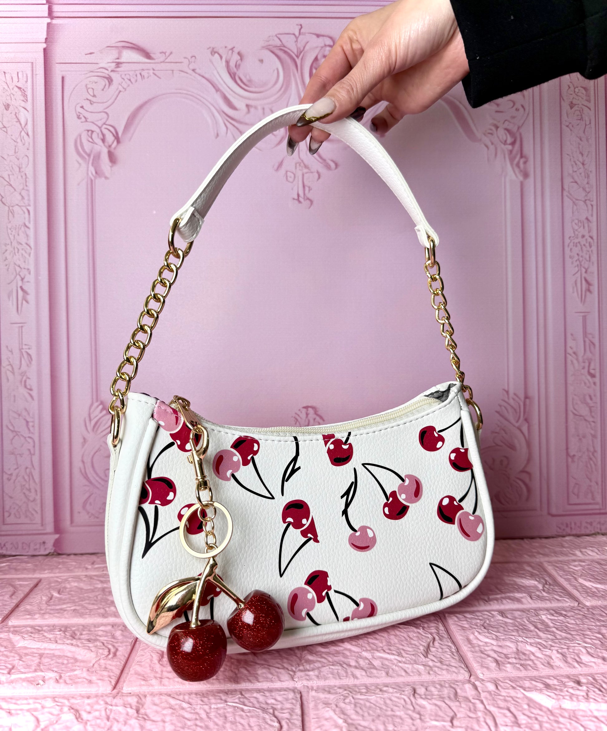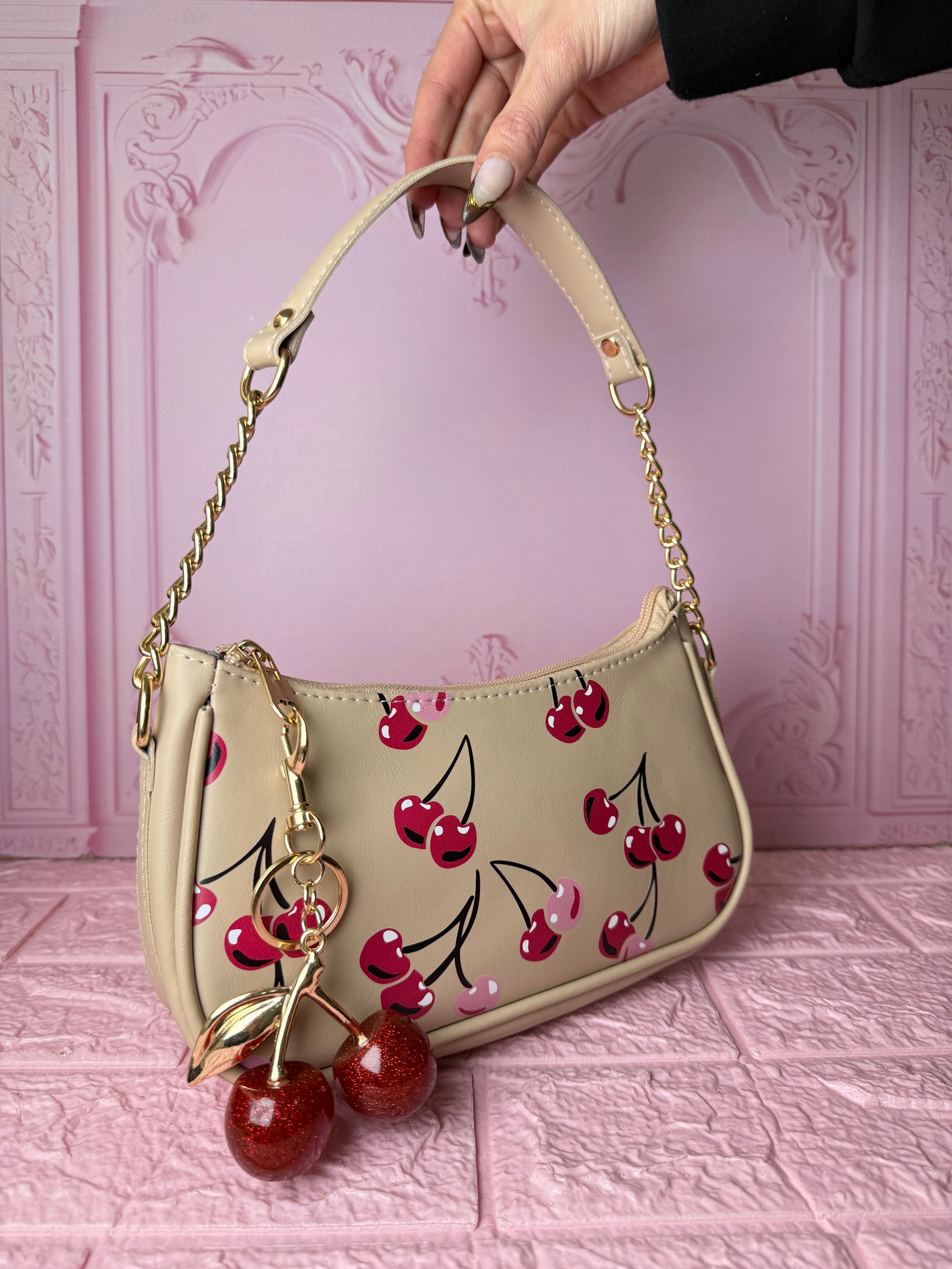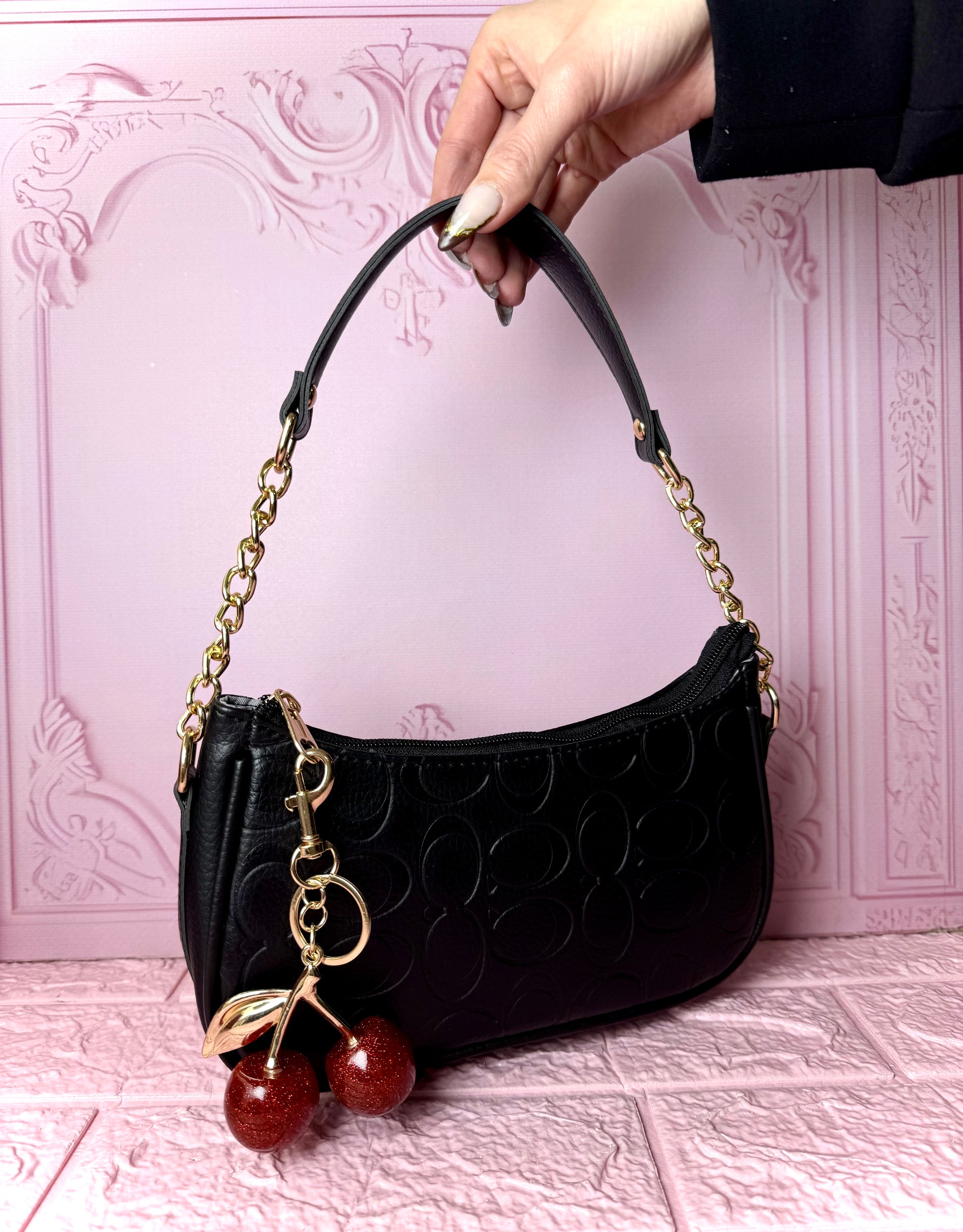 Bolso C.oach Ter.y confeccionado en cuero sintético con estampado de cerezas, este diseño ha sido tendencia desde el año pasado, por su manera de llevar (de hombro) y adicional trae correa para llevarlo de una manera más versátil y cómoda, sus herrajes dorados le dan un toque de lujo, su espacio es cómodo y suficiente para llevar todo lo básico y necesario, cuenta con unas medidas de 24 cm de ancho, 15 cm de alto y 7 cm de profundidad, es el accesorio perfecto para complementar cualquier outfit, disponible en los color negro y marrón, rosado y blanco, así mismo esos colores viene con estampado de cereza que ha marcado tendencia todo el año. EL CHERRY CHARM NO VA INCLUIDO.