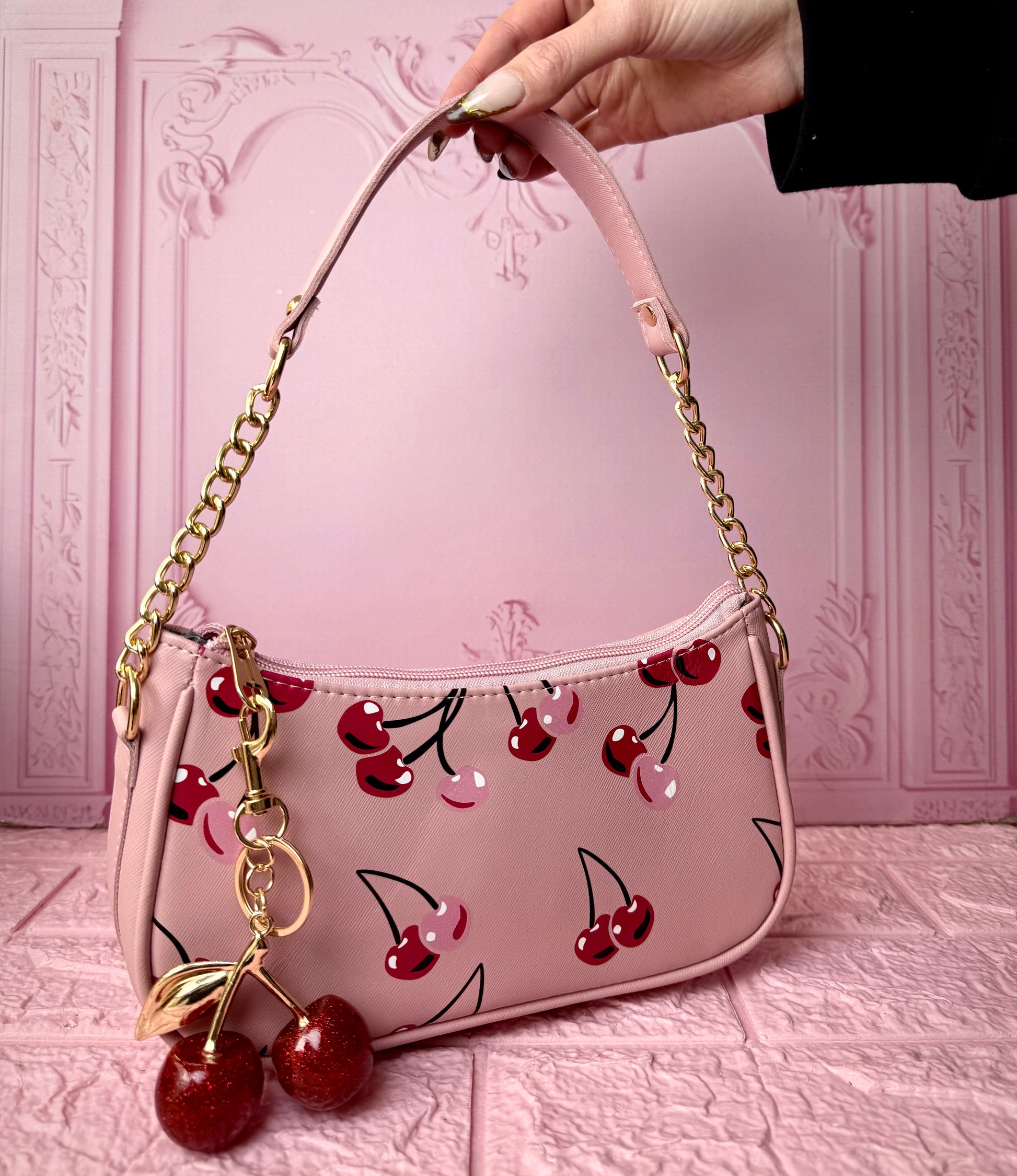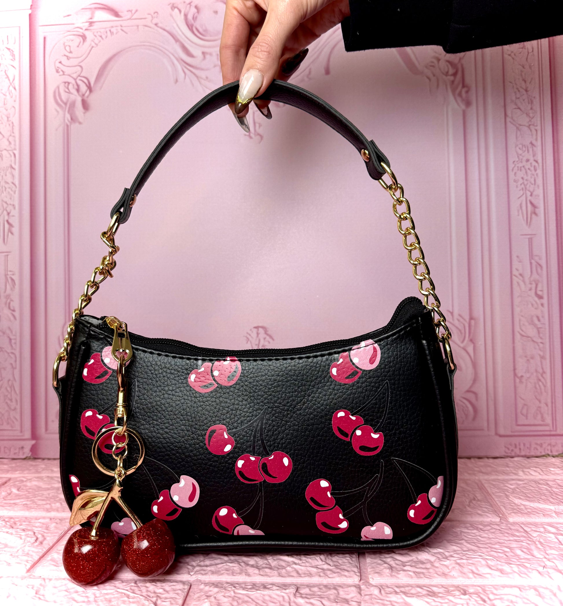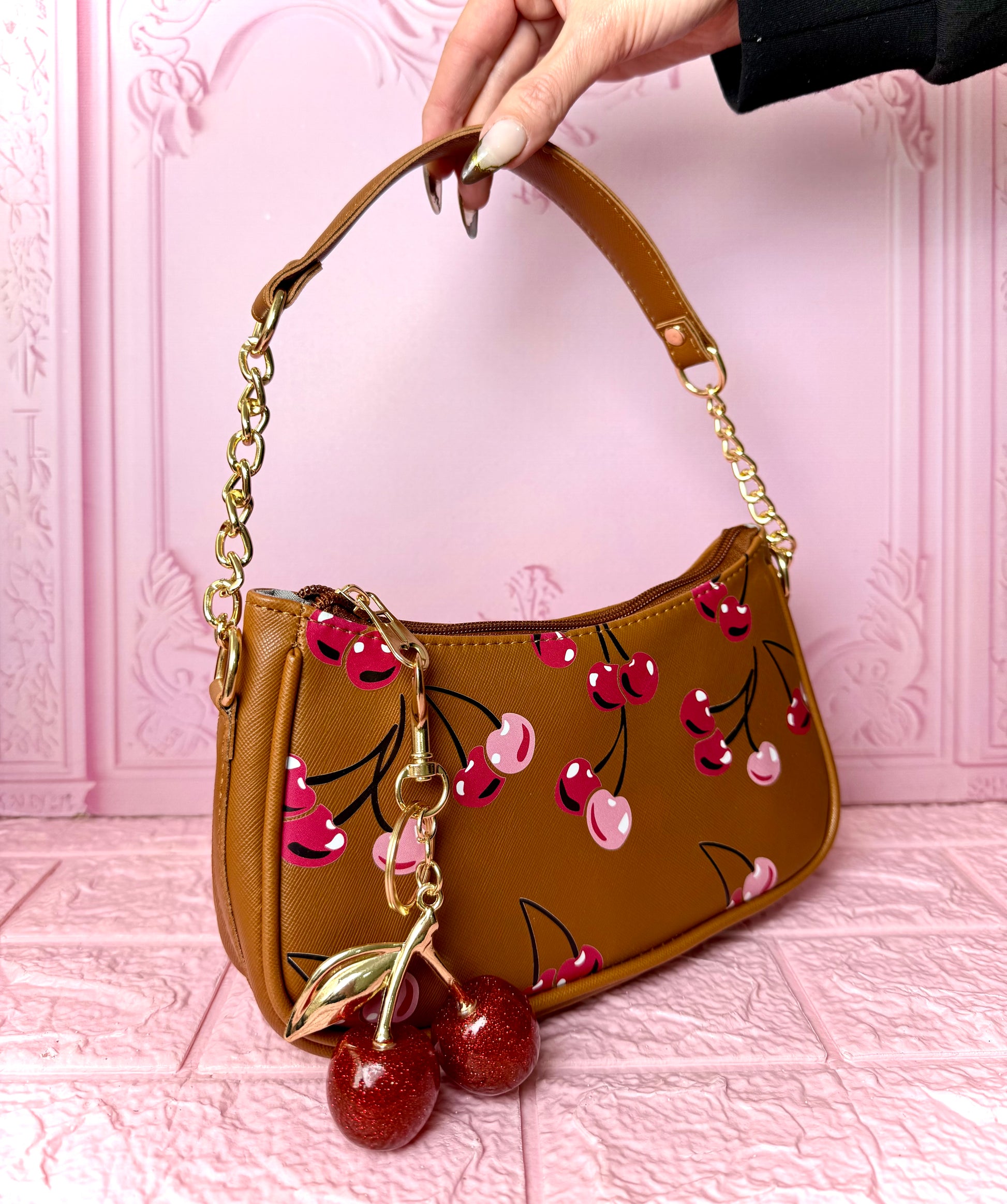 Bolso C.oach Ter.y confeccionado en cuero sintético con estampado de cerezas, este diseño ha sido tendencia desde el año pasado, por su manera de llevar (de hombro) y adicional trae correa para llevarlo de una manera más versátil y cómoda, sus herrajes dorados le dan un toque de lujo, su espacio es cómodo y suficiente para llevar todo lo básico y necesario, cuenta con unas medidas de 24 cm de ancho, 15 cm de alto y 7 cm de profundidad, es el accesorio perfecto para complementar cualquier outfit, disponible en los color negro y marrón, rosado y blanco, así mismo esos colores viene con estampado de cereza que ha marcado tendencia todo el año. EL CHERRY CHARM NO VA INCLUIDO.